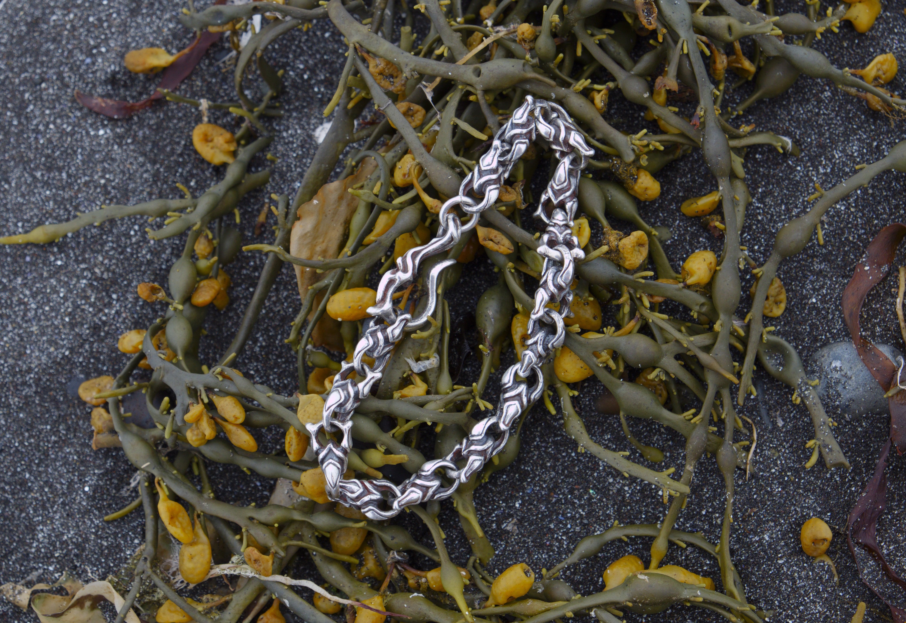With an antique finish and faceted details, each silver link bracelet has a striking look and a noticeable presence. Its sturdy weight and solid design make it durable and built to last. The repeating pattern adds a sense of continuity, connecting timeless inspiration with simple, bold style.